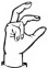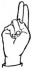 На ћирилици написано ДАНИЈЕЛ КАЗИМИРОВИЋ састоји се из 18 слова [?]. Исписано ћириличном једноручном азбуком за глувонеме: